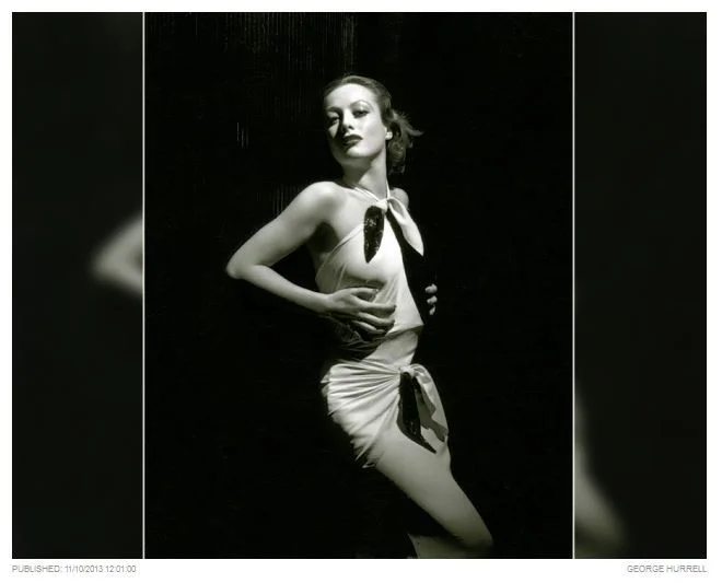 "Each sitting was a new experience for both of us," Hurrell said of working with Joan Crawford. "She constantly altered her appearance, the color of her hair, eye makeup, eyebrows, mouth."