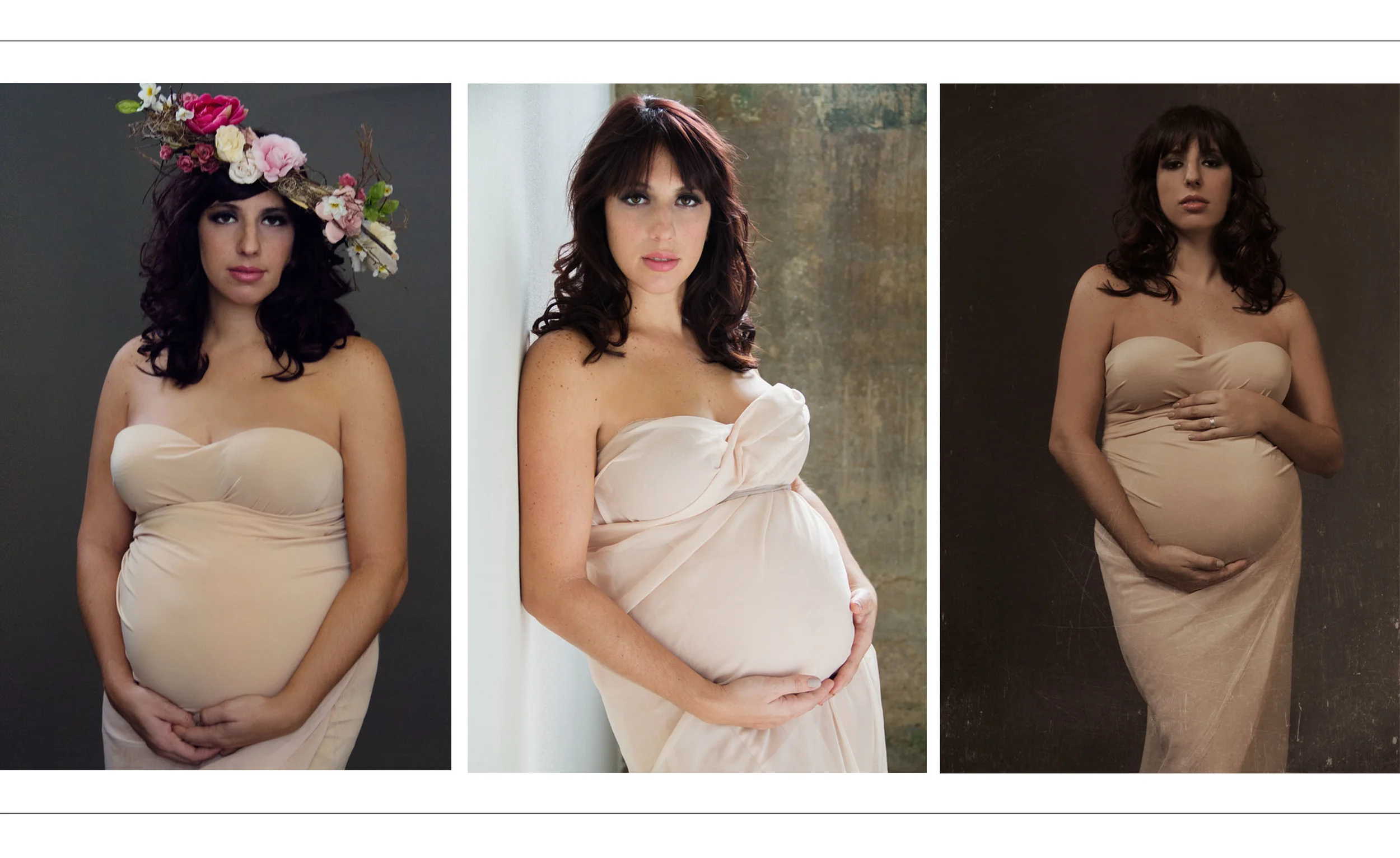 This lovely mother of one and one-to-be is the picture perfect representation of soft beauty, earth mother, and subtle glamour. We draped her beautiful belly in a simple nude fabric to accentuate the curve that is this little life inside.